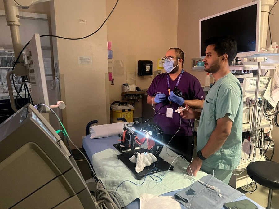 ESDトレーニングモデルを使用し診療後に練習する若手内視鏡医